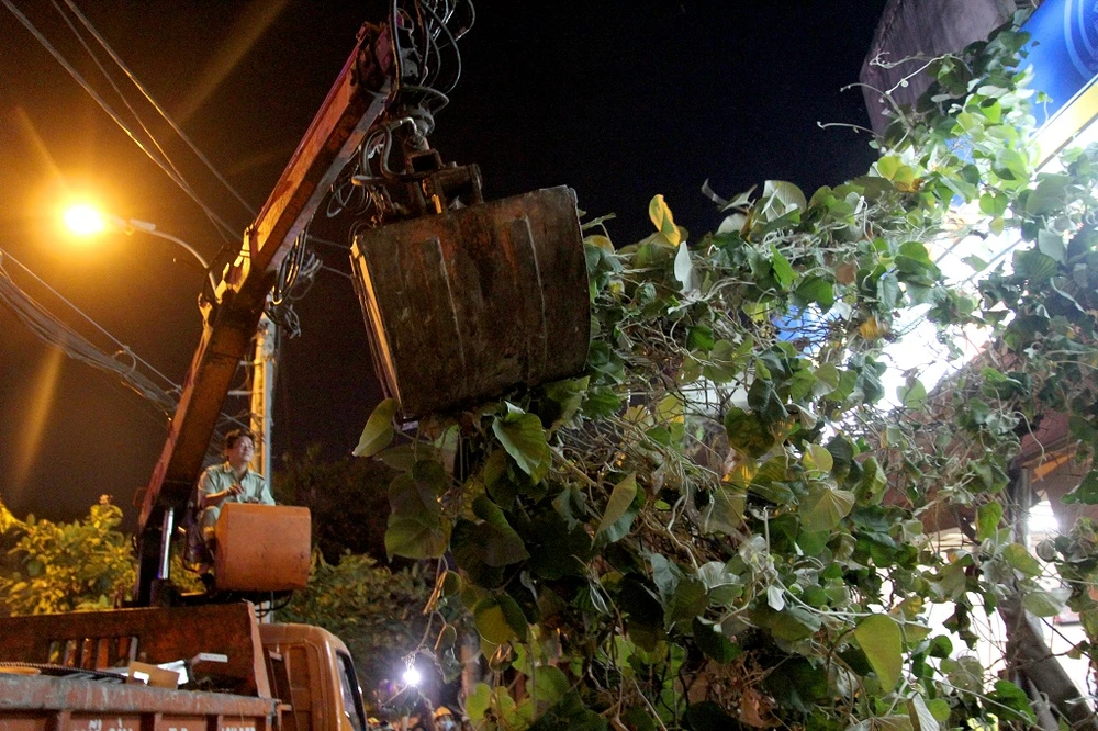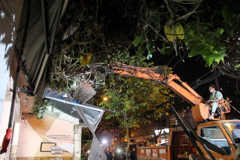 Một quán nhậu trên đường Cách Mạng Tháng Tám lắp mái che và trồng cây xanh với dây leo chằng chịt bị tháo dỡ ngay lập tức.