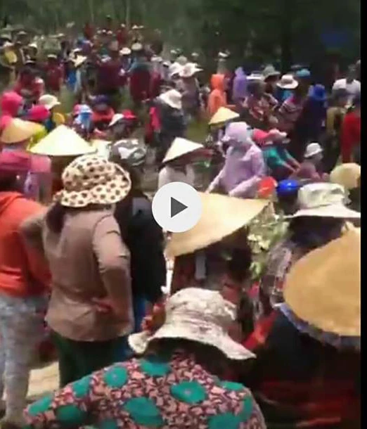 Người dân tụ tập cản trở thi công. Ảnh cắt từ clip trên FB.