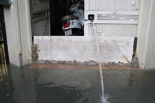 Ở nhiều khu dân cư, người dân phải làm tường chắn nước tràn vào nhà.