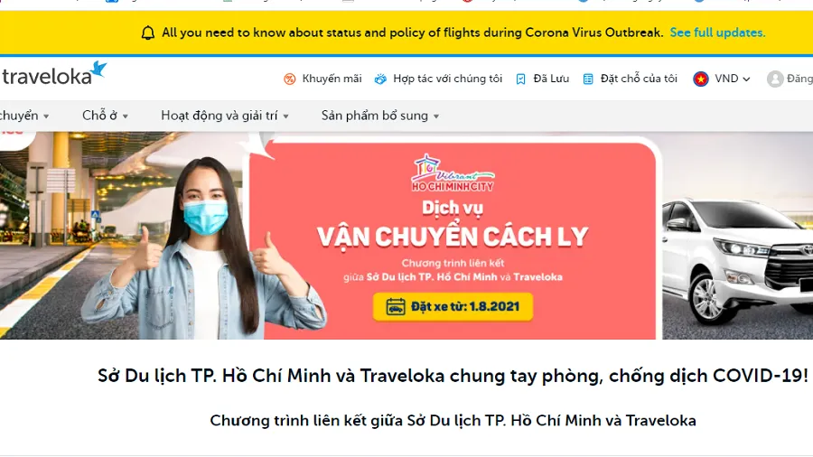 Theo đó, người dân có thể dễ dàng truy cập tất cả thông tin một cách đầy đủ nhất về các loại phòng cách ly, loại xe vận chuyển cách ly và giá cả trong thời gian thực cũng như có thể thanh toán trực tuyến thông qua ứng dụng hoặc trang web của Traveloka.