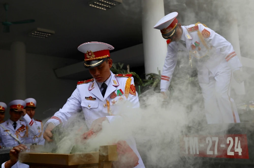Đội nghi lễ vào vị trí trước giờ truy điệu. Ảnh: Ngọc Thành/VNE