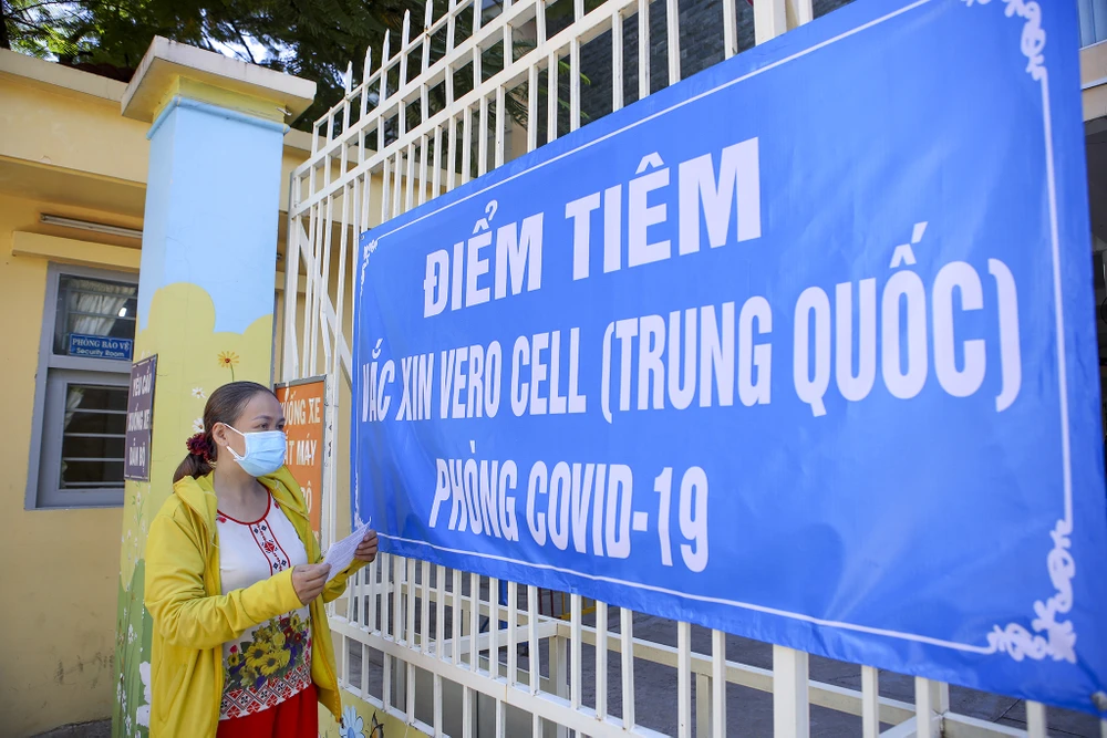 Bên ngoài điểm tiêm có ghi rõ tên loại vaccine là Vero Cell (Trung Quốc) để người dân biết.