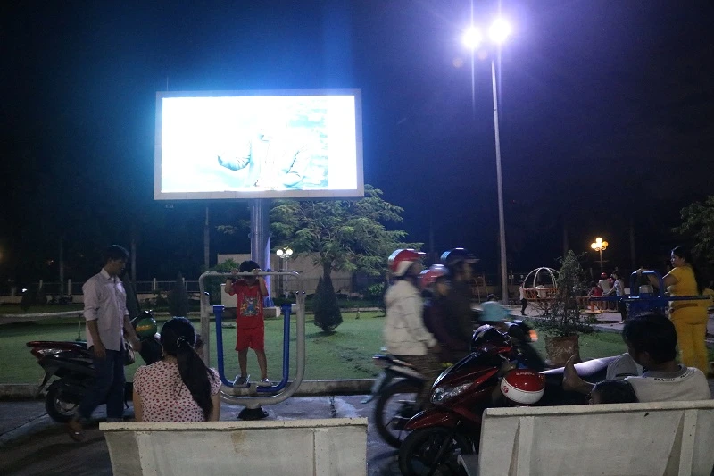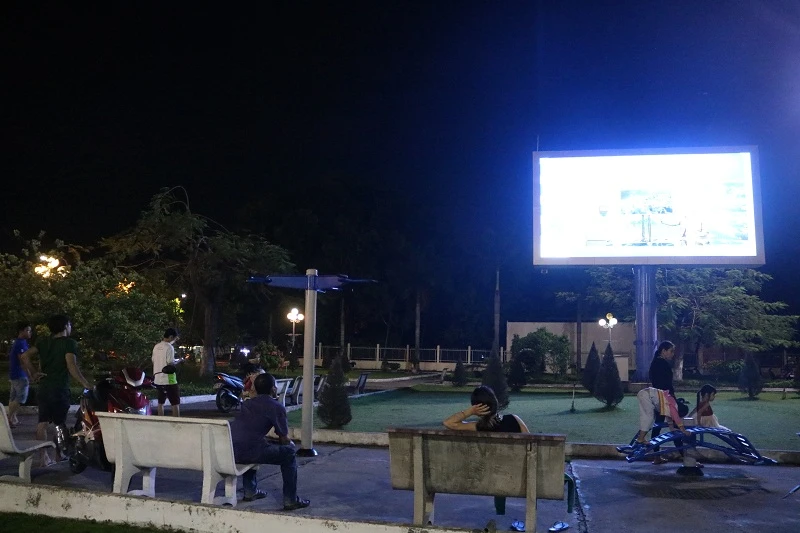 “Nhà tui không có tivi nên trước này chưa bao giờ được xem mấy chương trình như vậy cả. Từ lúc biết ở công viên có tivi chiếu miễn phí, chiều chiều đi làm về tui hay đạp xe ra đây, vừa đi bộ vừa tranh thủ xem khoảng 2, 3 tiếng đồng hồ rồi về. Vậy chớ biết được thêm nhiều cái hay ho lắm” - chú Dũng cười nói.