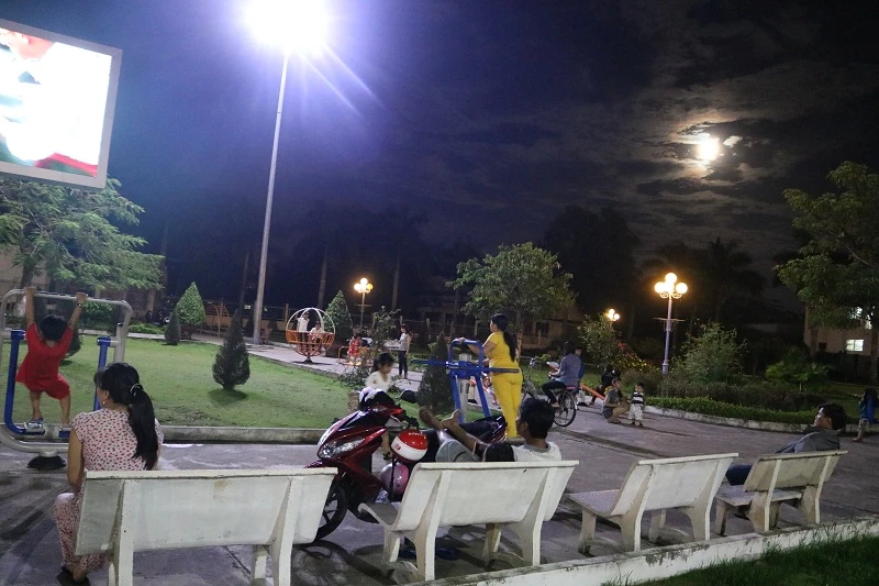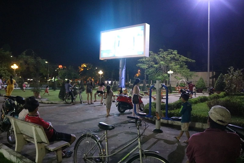 Màn hình tivi được lắp ngay giữa trung tâm của công viên, thuận tiện cho mọi hoạt động của người dân.