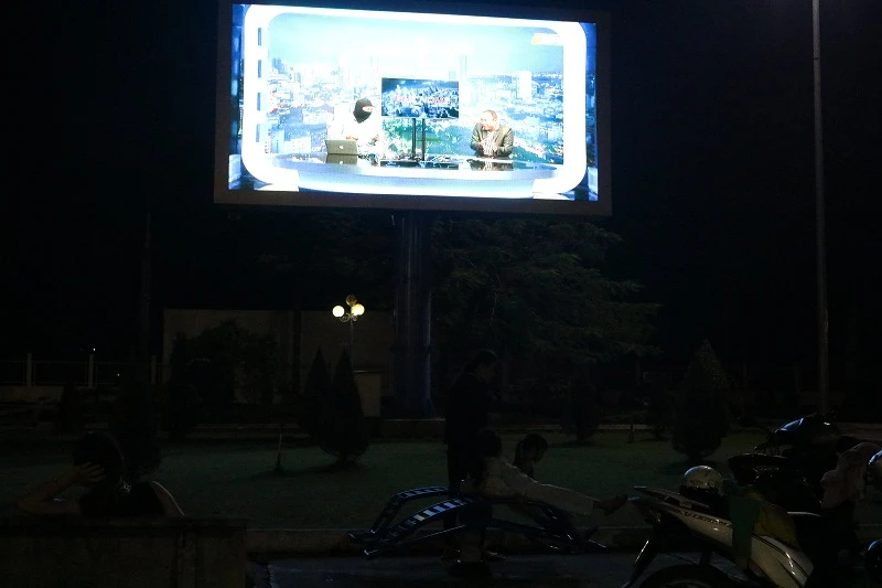 Chỉ những khi trời mưa thì mọi người mới không ra xem được, tivi cũng ngừng chiếu chứ bình thường rất đông người đến đây để xem.