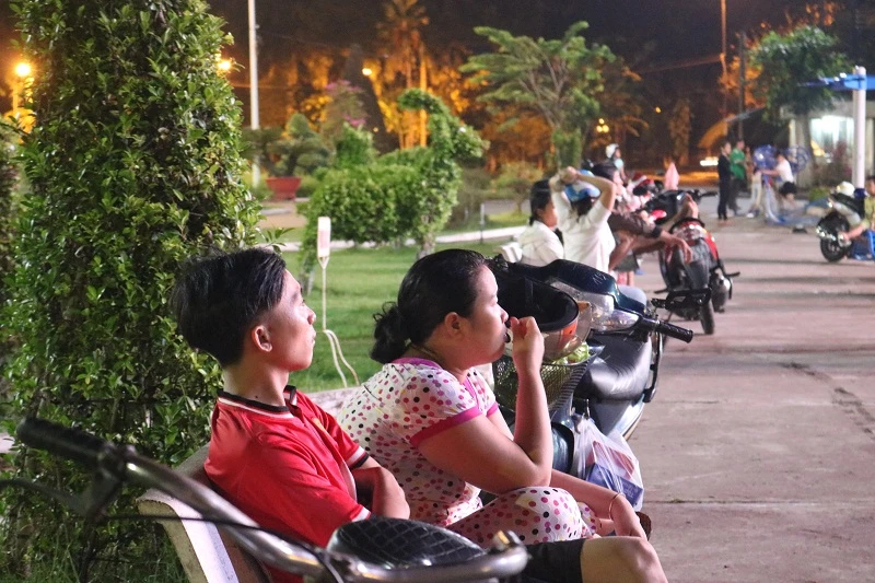 Chị Nguyễn Thanh Hương (37 tuổi) đi cùng chồng và hai đứa con đến công viên để tập thể dục rồi cả nhà bốn người ngồi trên ghế đá xem hết chương trình này đến chương trình khác. Có khi mãi xem đến tận 11 giờ mới chịu về nhà.