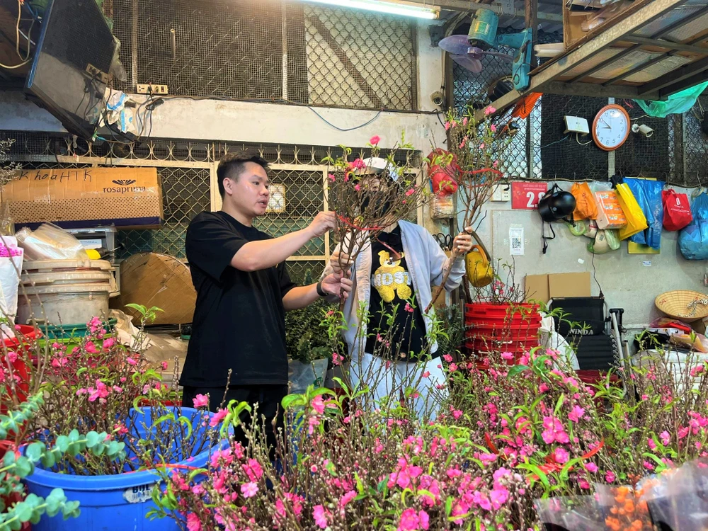 Trong khi đó tại chợ hoa Hồ Thị Kỷ quận 10, thời điểm này một số sạp hoa có bán thêm những cành hoa đào được nhiều khách hàng quan tâm. Tùy dáng cành chiều cao, trung bình từ 150.000 - 800.000 đồng/ cành.