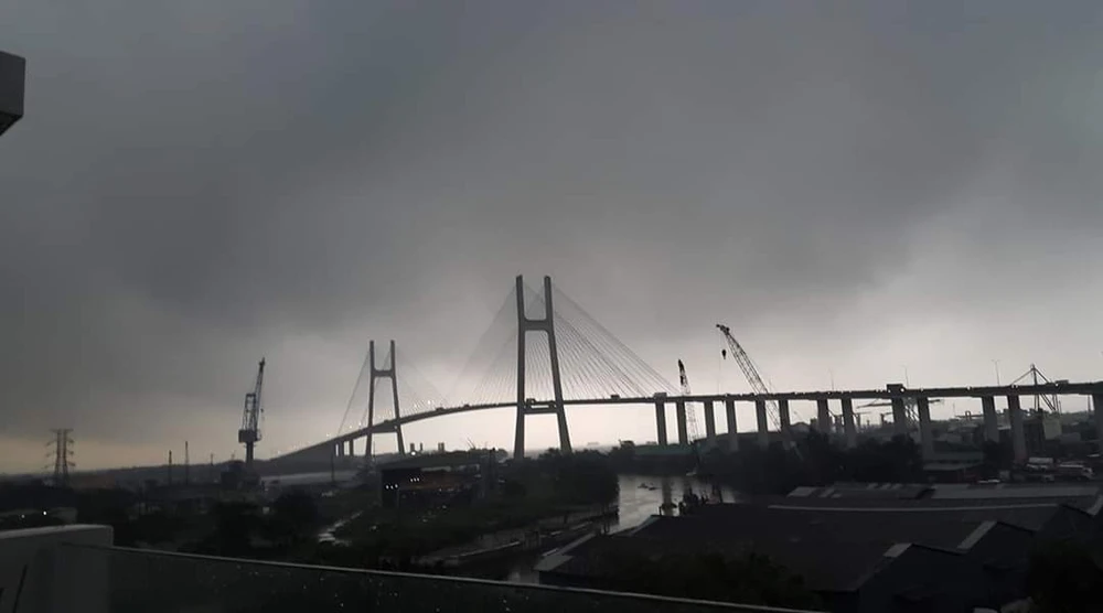 Mây đen vần vũ, bầu trời tối sầm ở khu vực quận 7. Ảnh: Đ. Liên
