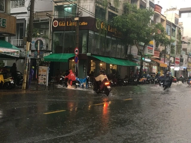 Mưa đúng vào giờ tan tầm nên người dân đi lại càng đông.