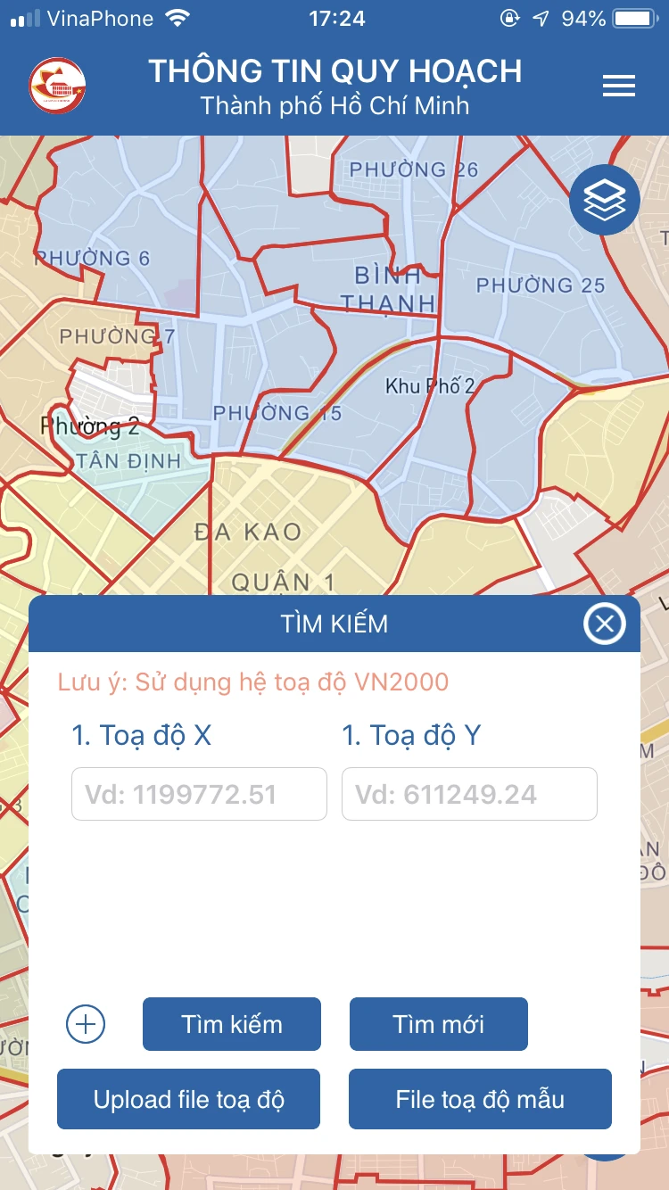 Thông tin quy hoạch được cung cấp trên ứng dụng “Thông tin quy hoạch Thành phố Hồ Chí Minh” là các nội dung thuộc đồ án quy hoạch phân khu tỉ lệ 1/2000 được phê duyệt trên địa bàn thành phố (24 quận, huyện).