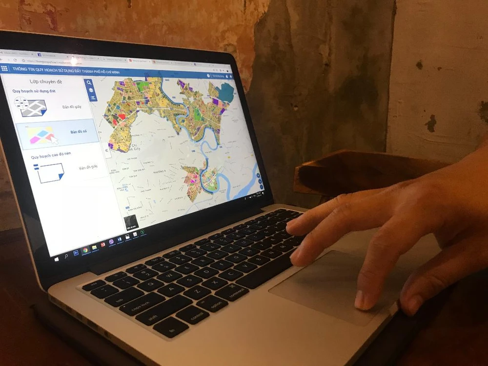 Tìm kiếm thông tin quy hoạch trên máy tính. Ảnh: VIỆT HOA