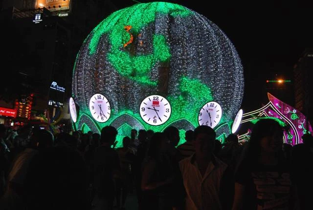 Qủa địa cầu và đồng hồ chào năm mới trên đường Nguyễn Huệ