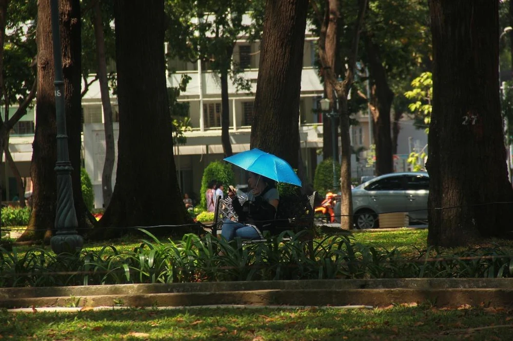Người dân phải ghé vào công viên, tận dụng bóng mát từ cây xanh để nghỉ ngơi, tránh nắng.