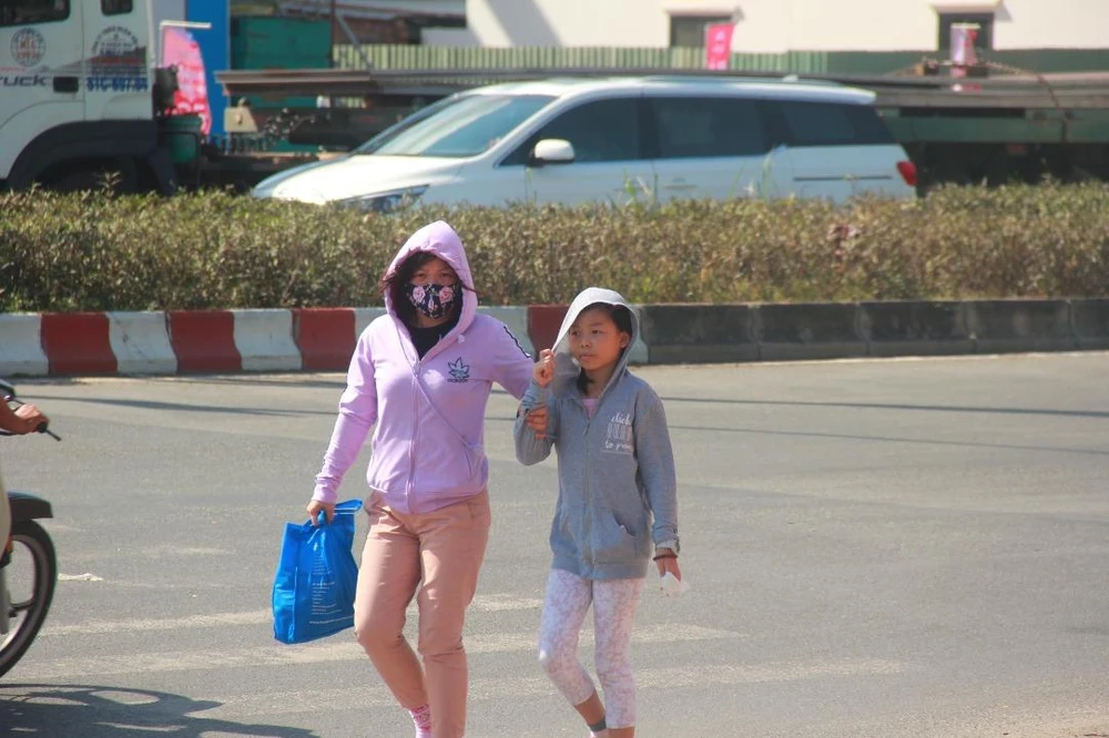 Người dân ra đường phải trang bị áo khoác, khẩu trang... kín mít như ninja để tránh tác động của bức xạ nhiệt giữa trời nắng nóng.