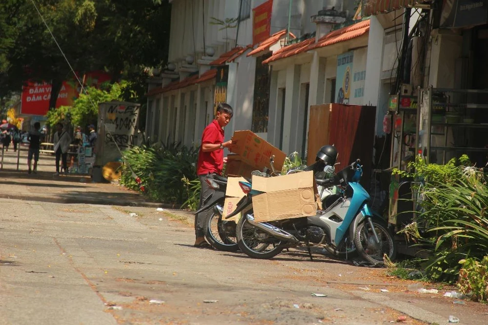 Người bảo vệ này phải dùng các bìa cát tông để che các yên xe để tránh... nóng.