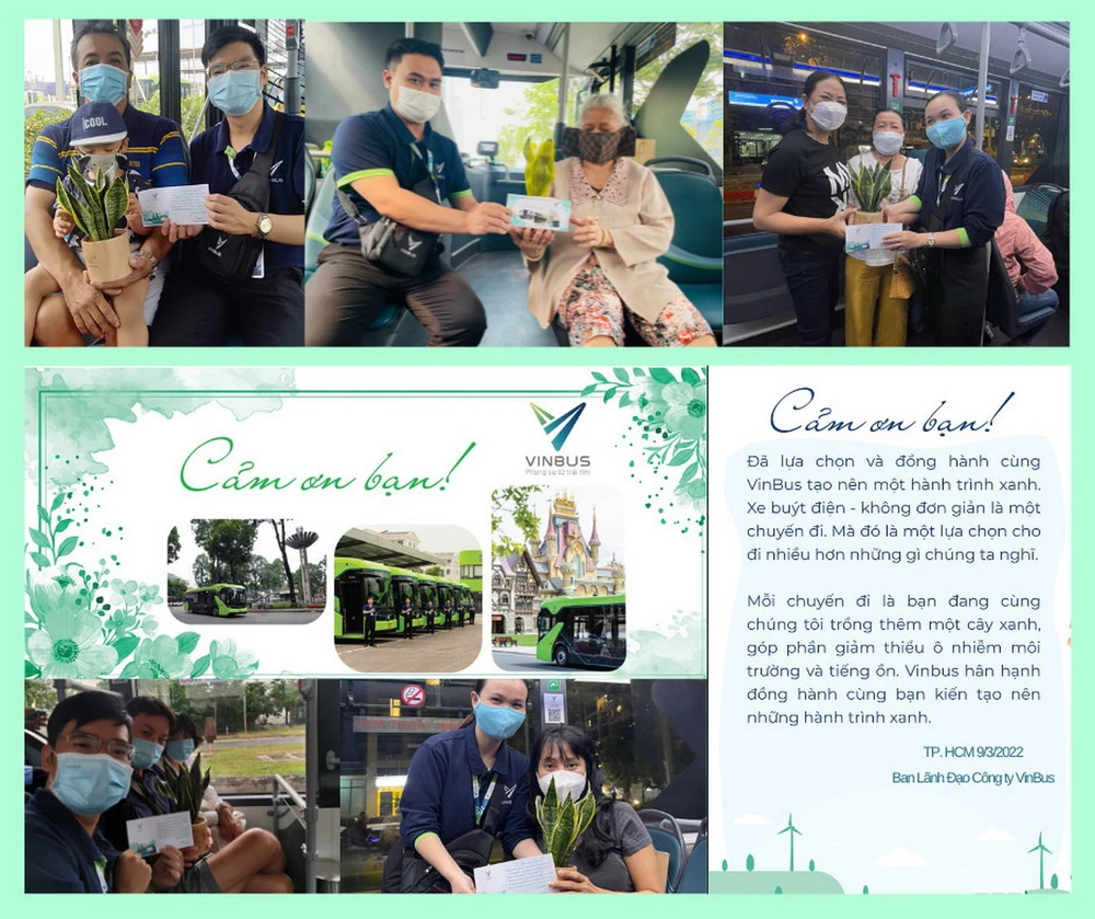 Những người dân trải nghiệm xe buýt điện ngày đầu tiên còn nhận được món quà may mắn là những chậu cây xanh xinh xắn, biểu trưng cho việc đã chung tay cùng VinBus xây dựng giao thông xanh, giảm thiểu ô nhiễm môi trường tại thành phố.