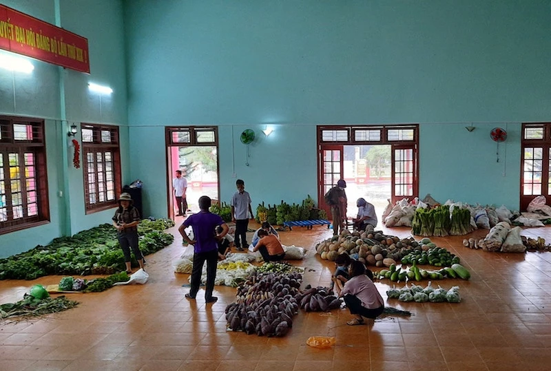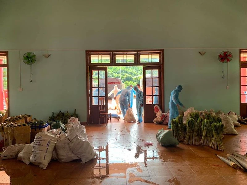 Thực phẩm sạch bà con huyện Nam Trà My ủng hộ chất đầy các phòng trước khi chuyển về TP Đà Nẵng.