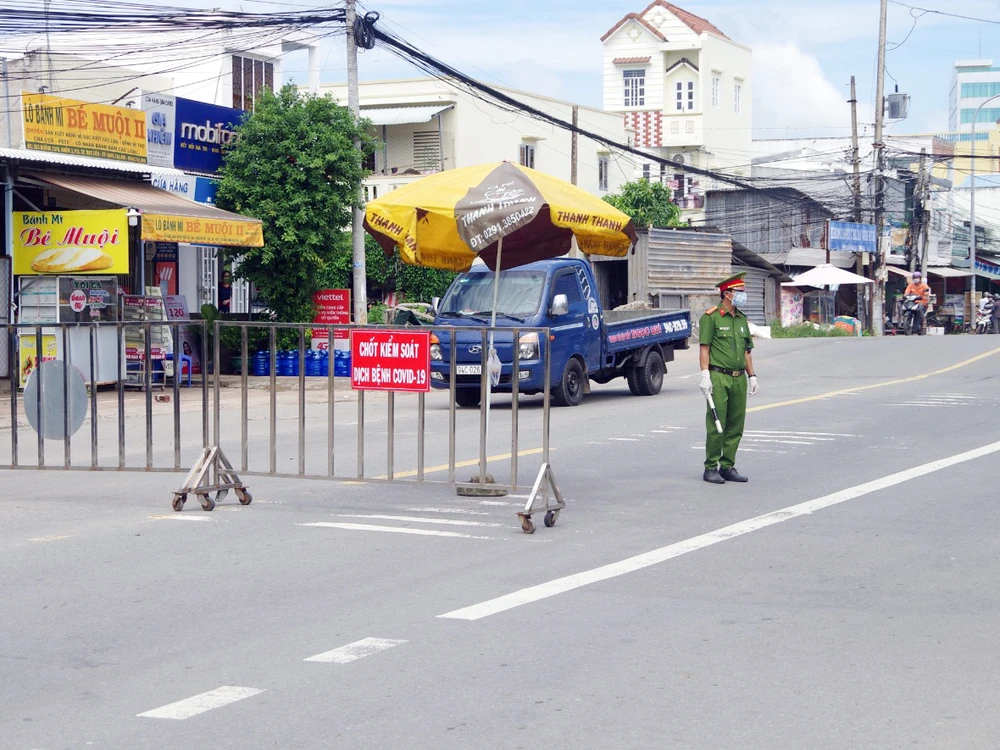 Chủ tịch UBND tỉnh Bạc Liêu yêu cầu lực lượng tại các chốt kiểm soát giao thông liên tỉnh phải kiểm tra, giám sát chặt chẽ tất cả mọi người, kể cả người đi bộ và các phương tiện qua chốt. Ảnh: TIẾN TRINH