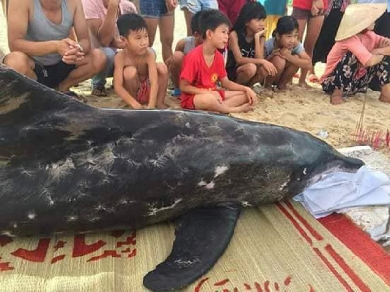 Sáng 26-6, ông Nguyễn Văn Giàu, Phó Chủ tịch UBND thị trấn Thuận An (huyện Phú Vang, tỉnh Thừa Thiên - Huế), cho biết một con cá heo nặng gần 150kg đã dạt vào bờ biển thôn Hải Bình.