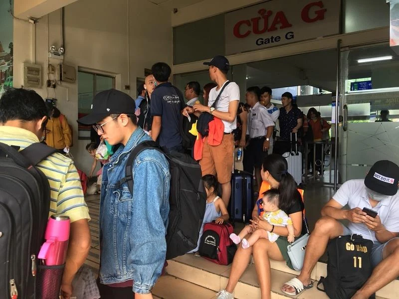 Nhiều người xếp hàng để đi du lịch trong dịp lễ. Ảnh: ĐÀO TRANG.
