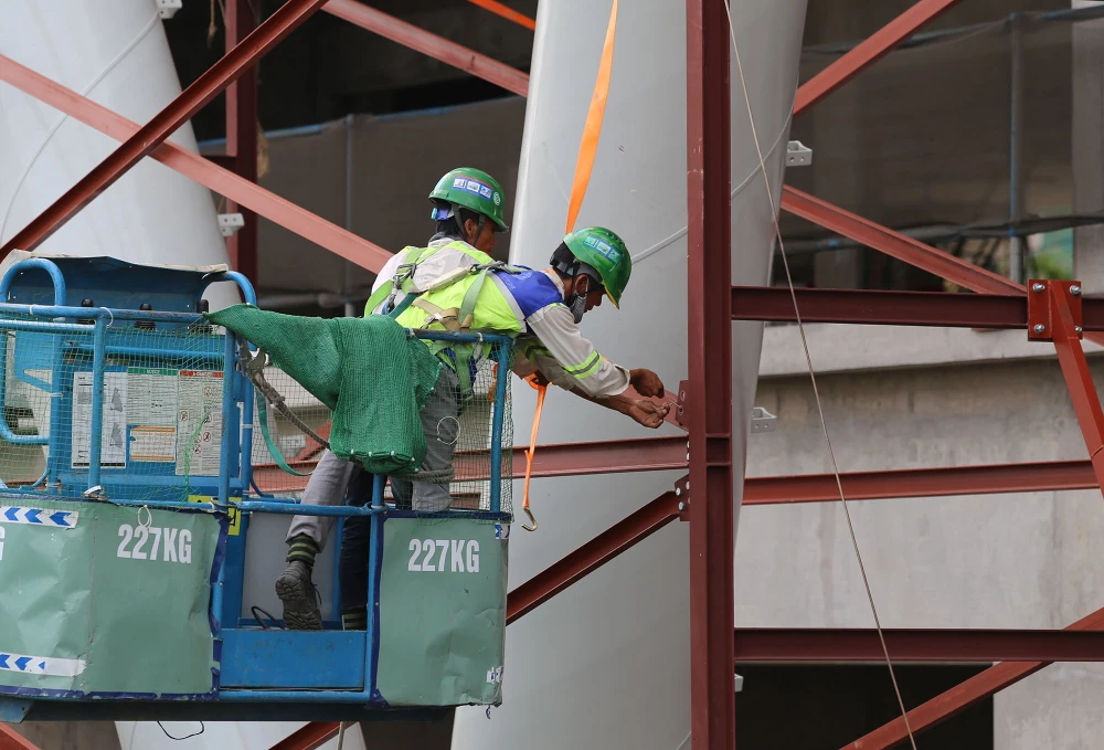 Công nhân thi công metro số 1 giữa cái nóng rát da.