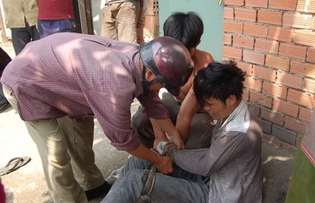 Phạm Minh Phương bị người dân khống chế, vây bắt. Ảnh: ANH PHÚ
