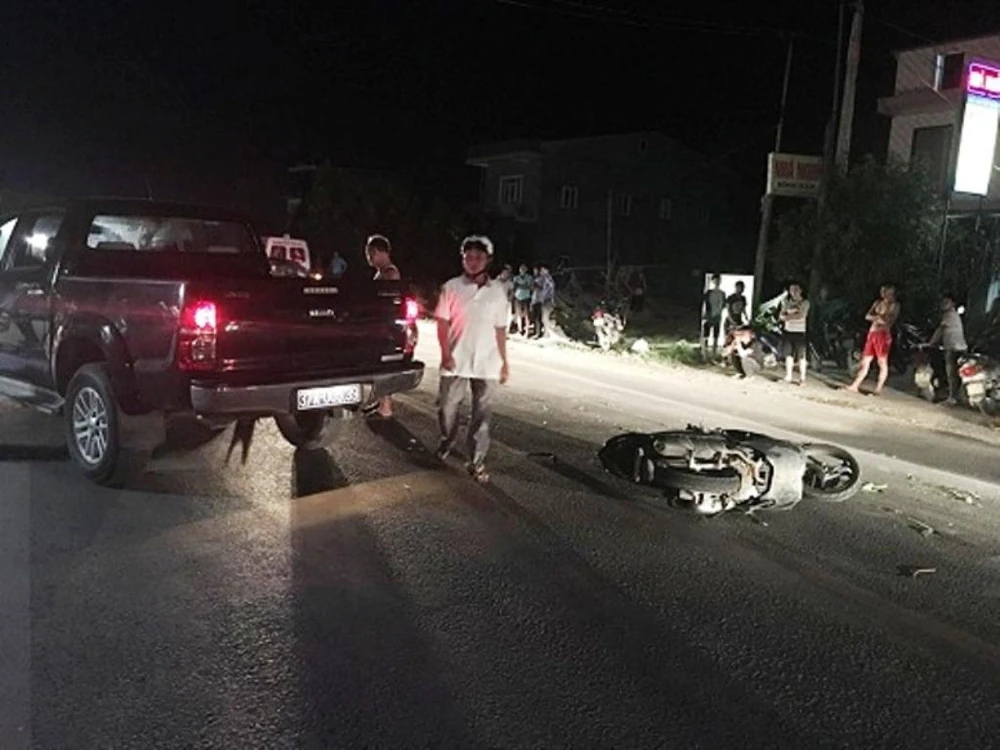 Vụ tai nạn xảy ra đêm 12-6 trên quốc lộ 46 (đoạn qua xã Nam Giang, huyện Nam Đàn, Nghệ An).