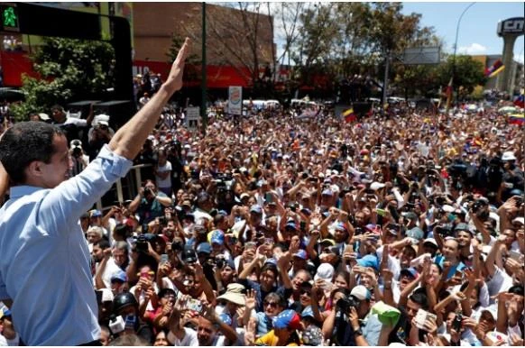 Đám đông người dân biểu tình theo lời kêu gọi của ông Guaido. Ảnh: REUTERS