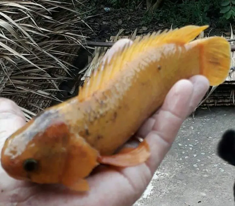 Con cá rô có màu vàng trên tay anh Nam. Ảnh: Hồng Nam