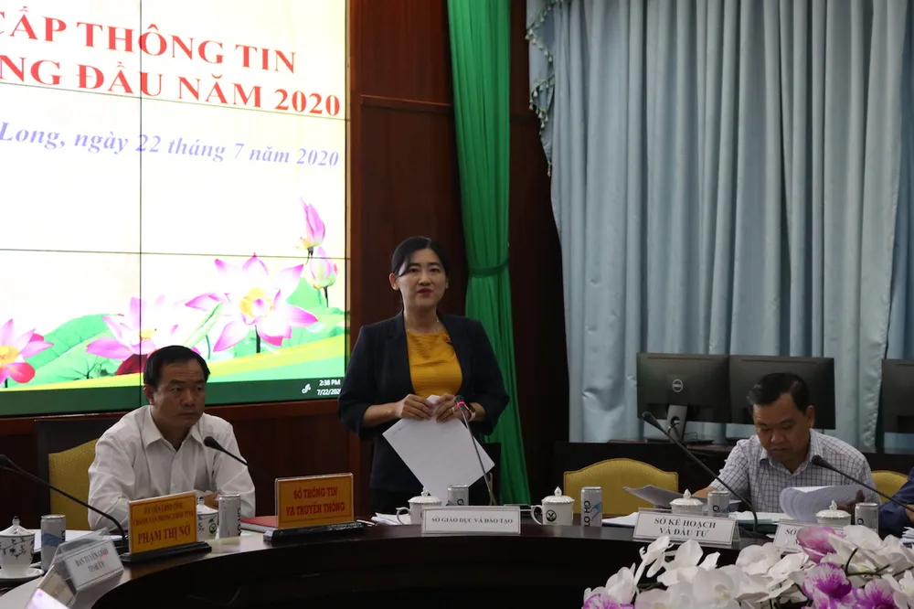 Bà Nguyễn Thị Ngọc Bích, Phó Giám đốc Sở GD&ĐT tỉnh Vĩnh Long thông tin về kỳ thi Tốt nghiệp THPT năm 2020. Ảnh: HD
