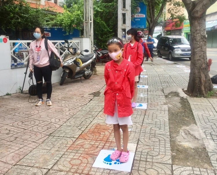 Theo ba và chị hai đi nhận khẩu trang miễn phí từ cây ATM, em Phạm Trần Tú Như (12 tuổi, Cao Lãnh, Đồng Tháp) cảm ơn các cô chú đã tạo ra cây ATM này, giúp em có những cái khẩu trang chống dịch COVID-19.