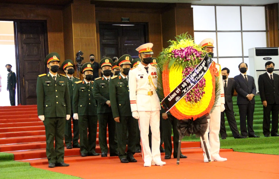 Đảng ủy Quân khu 4, do Trung tướng Nguyễn Doãn Anh, Tư lệnh Quân khu 4, làm trưởng đoàn bày tỏ niềm tiếc thương vô hạn trước sư ra đi của nguyên Tổng Bí thư Lê Khả Phiêu. Ảnh: ĐẶNG TRUNG