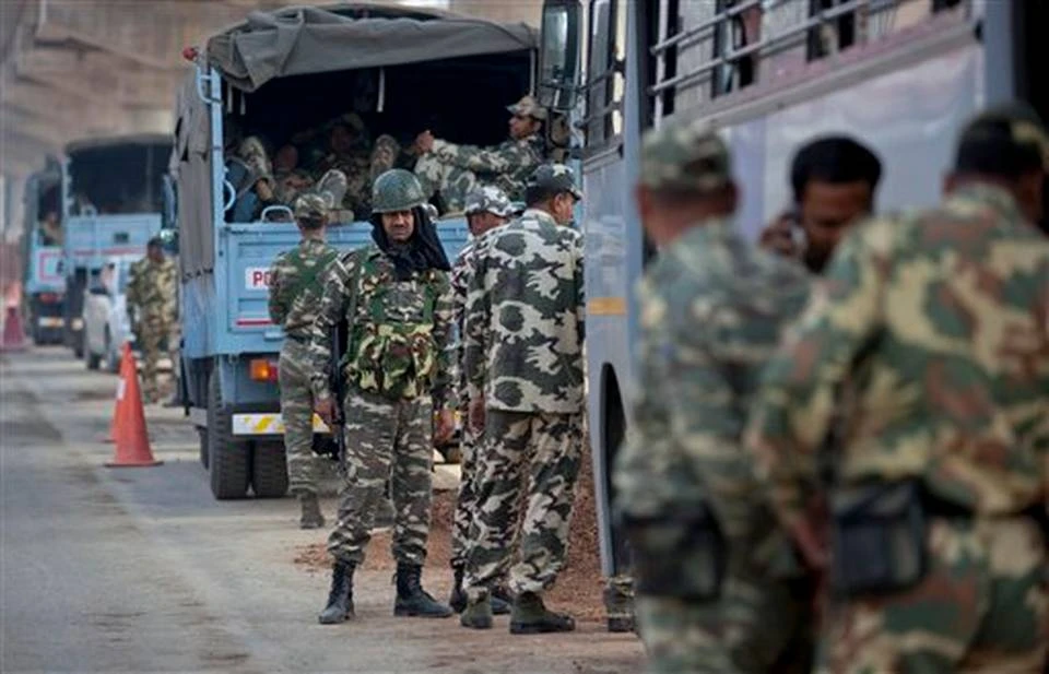 Binh sĩ Ấn Độ trên quốc lộ nối bang Haryana với thủ đô New Delhi trong ngày 20-2. Ảnh: AP