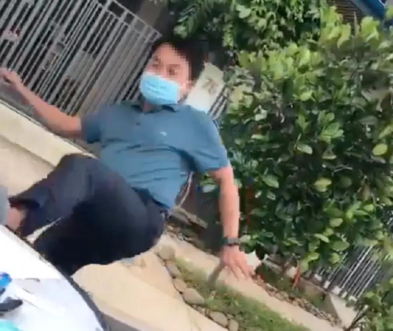 Người đàn ông đạp đổ bàn làm việc của nhân viên y tế xảy ra trên địa bàn xã Phước Kiển, huyện Nhà Bè. Ảnh cắt từ clip