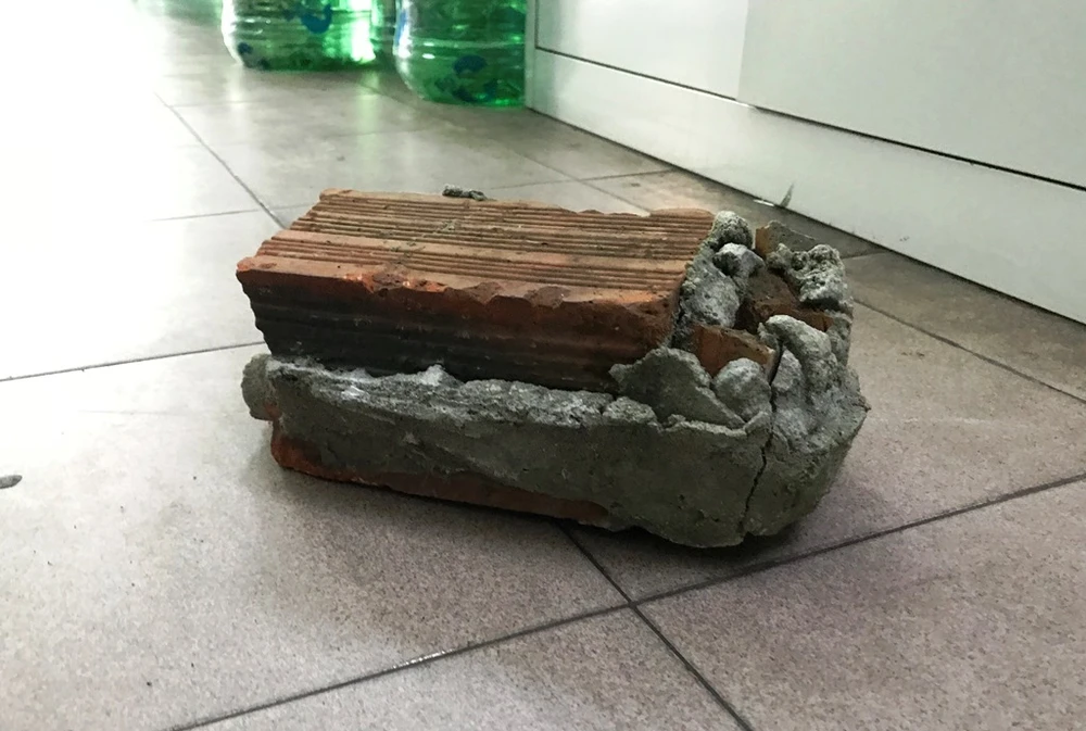 Viên gạch tang vật nghi phạm dùng đập phá ô tô. Ảnh: HẢI HIẾU