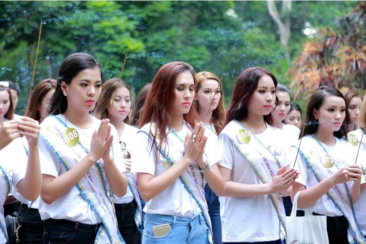 Ngày 3-8, tiếp nối các hoạt động bên lề hướng tới đêm chung kết Hoa hậu Bản sắc Việt toàn cầu, các thí sinh đã đến thăm và thắp nhang tại Khu di tích Lam Kinh (Thanh Hóa).