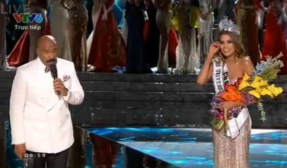 Tuy nhiên, khi hoa hậu Colombia vừa được trao vương miện hoa hậu thì MC đã... công bố lại. Hoa hậu Hoàn vũ 2015 thực sự là hoa hậu Philippines! Lúc này, vương miện hoa hậu đã phải chuyển từ hoa hậu Colombia sang hoa hậu Philippines. Hoa hậu Philippines từ ngỡ ngàng, ngơ ngác đã vỡ òa trong hạnh phúc khi vinh quang đã thuộc về mình.