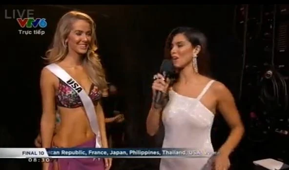 Hoa hậu Philippines đại diện duy nhất cho Đông Nam Á vào tốp 5. Hai đại diện châu Á: Úc và Philippines. Ba đại diện còn lại là nước chủ nhà Mỹ, Pháp và Colombia. Họ chuẩn bị bước vào thi ứng xử. Dù được đánh giá cao nhưng Phạm Hương không lọt vào tốp 15 như vừa được công bố.