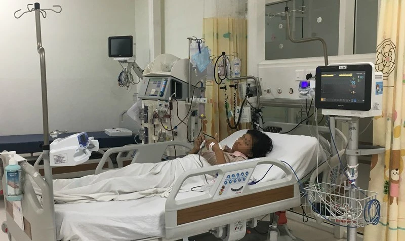 Bé Q. đang được tích cực lọc máu và theo dõi tại khoa Hồi sức tích cực chống độc BV Nhi đồng TP. Ảnh: HL