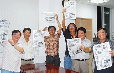 Niềm vui của tòa soạn trong số đầu cải tiến báo ngày 1-6-2013. Ảnh: HTD