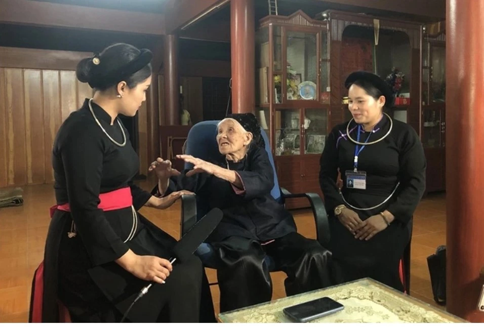 Cụ Hoàng Thị Khìn là người dân tộc Nùng, từng tham gia công tác hậu cần, tiếp tế, phục vụ Bác Hồ trong thời gian Người sống và làm việc tại Pác Bó.