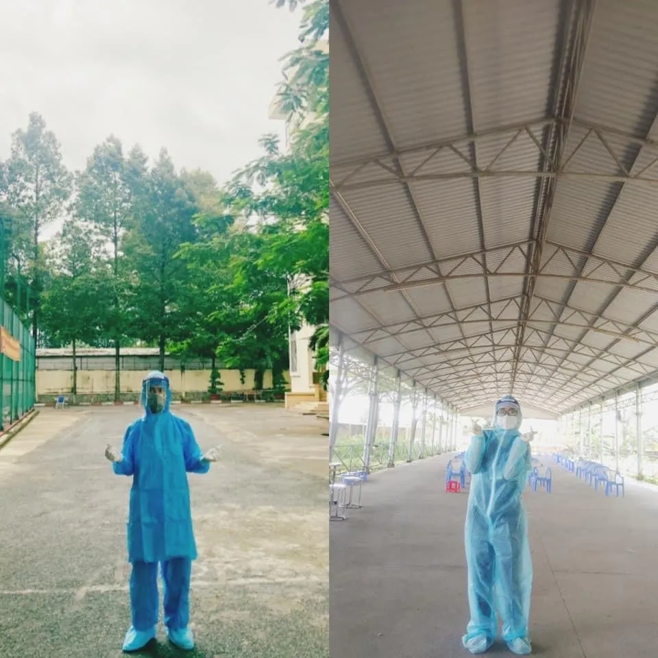Anh bộ đội và chị dược sĩ đều là hai người trong tuyến đầu chống dịch.