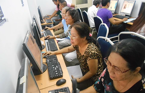 Căn phòng nhỏ ở Trung tâm Phát triển Khoa học và Công nghệ trẻ (Thành đoàn TP.HCM) lúc nào cũng rôm rả tiếng hỏi bài của những học sinh lớn tuổi. Đều đặn từ thứ Hai đến thứ Bảy mỗi tuần, các cô chú đến đây để tham gia lớp học Internet với nhiều khung giờ khác nhau ở cả hai buổi sáng, chiều.