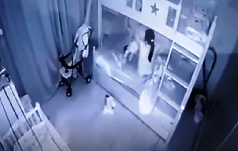 Sáng hôm sau, anh T. đi làm và ngồi mở camera trong phòng ngủ xem lại thì thấy cảnh bà Doan quát nạt, yêu cầu bé “ngủ đi”, khi cháu bé vẫn còn khóc thì bà nhúi người vào chăn rồi còn cầm chân cháu bé dốc ngược lên, rồi lại ném xuống giường…
