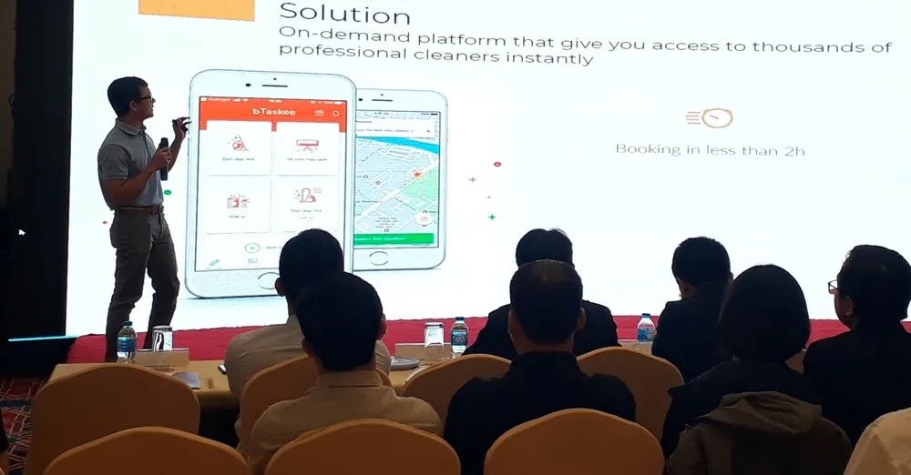 Một trong những phần thuyết trình nhận được sự khích lệ từ ban giám khảo đó là bTaskee (ứng dụng giúp việc nhà theo giờ) của Đỗ Đắc Nhân Tâm, kỹ sư phần mềm tại Canada.