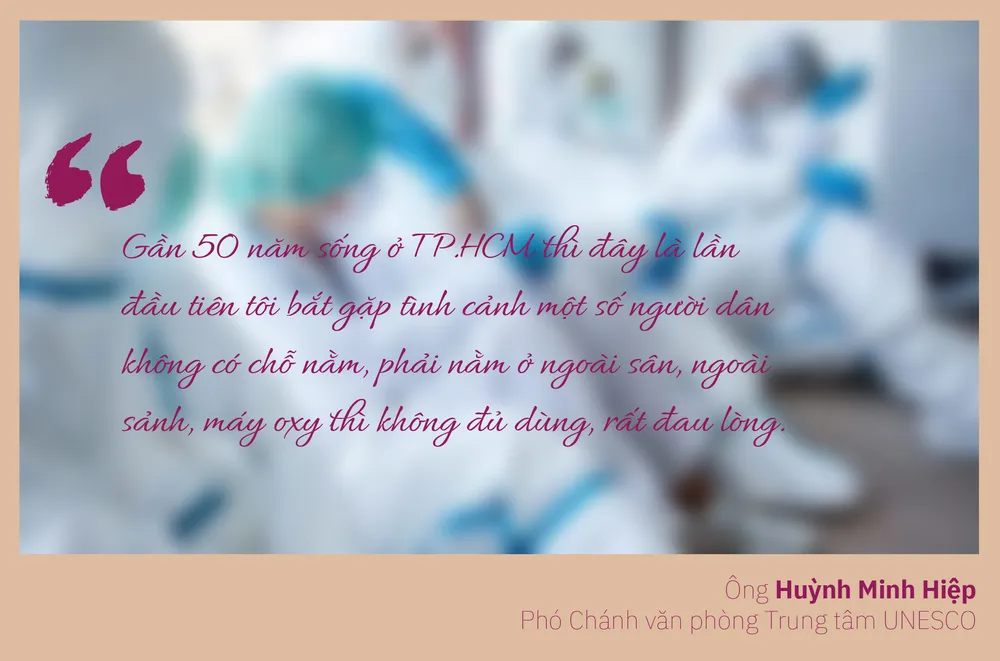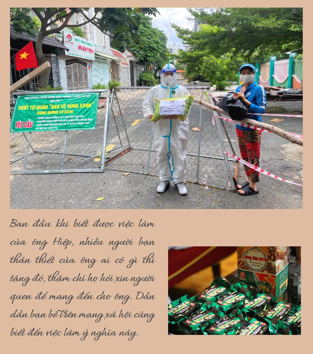 Ông Hiệp tâm sự: “Tôi nhớ nhất ngày 23-8 là ngày Sài Gòn giãn cách ở mức cao nhất, 'Ai ở đâu thì ở yên đó'. Vì tham gia vào đội tình nguyện chống dịch, ngày nào tôi cũng ra đường để hỗ trợ. Tôi tận mắt chứng kiến cảnh Sài Gòn tang thương, chỉ có xe cứu thương, xe của quân đội, xe của tình nguyện viên”.