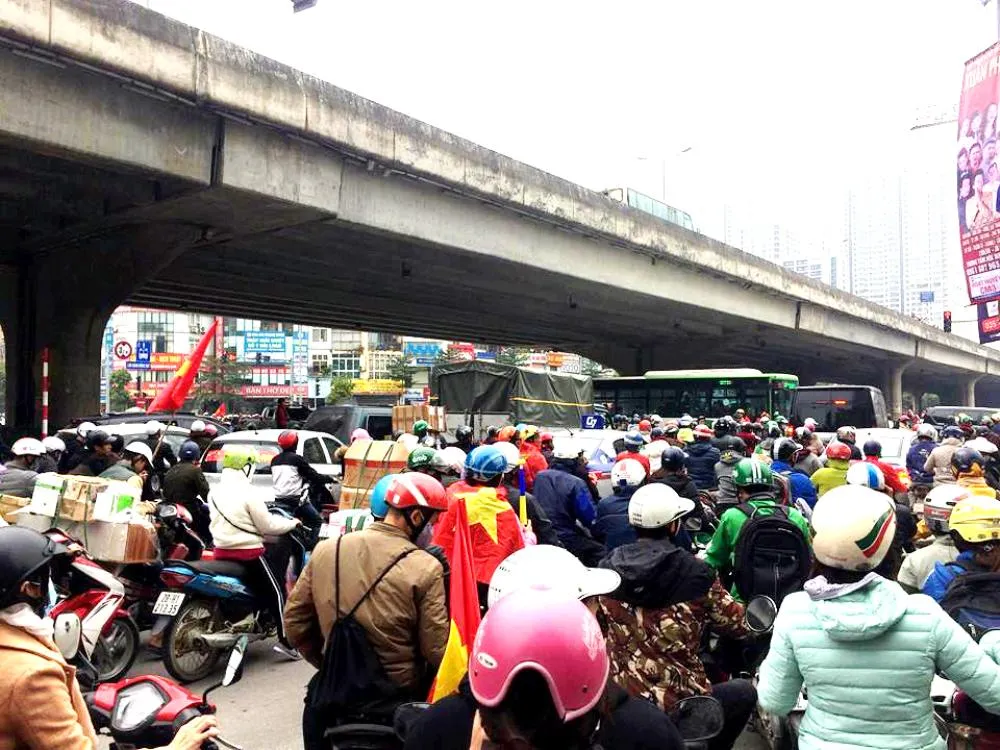 Nhiều ngả đường đổ về sân vận động Mỹ Đình đã chật ních người di chuyển. Ảnh: MINH PHẠM