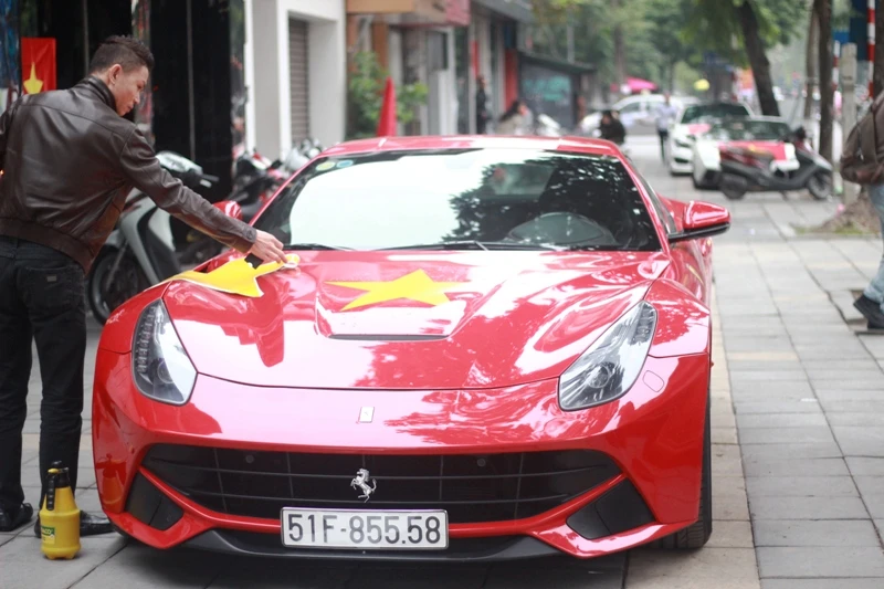 Một chiếc siêu xe nhuộm cờ đỏ sao vàng. Ảnh: V.THỊNH