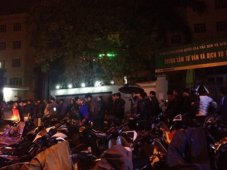 Rất nhiều người xếp hàng dài từ đêm hôm trước đến sáng hôm sau để đặt mua vắc xin 5 trong 1 cho trẻ.