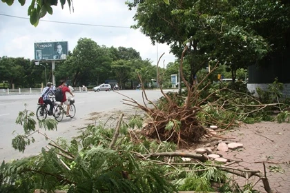 Theo ghi nhận tại nhiều tuyến đường tại Hà Nội như: Đường Láng, Nguyễn Chí Thanh, Trần Quốc Hoàn, Nguyễn Văn Huyên, Núi Trúc… nhiều cây cối đổ, gãy sau cơn mưa bão vào sáng qua vẫn chưa được dọn dẹp.